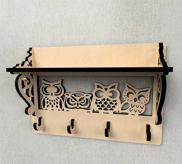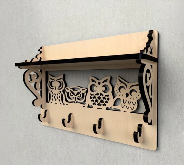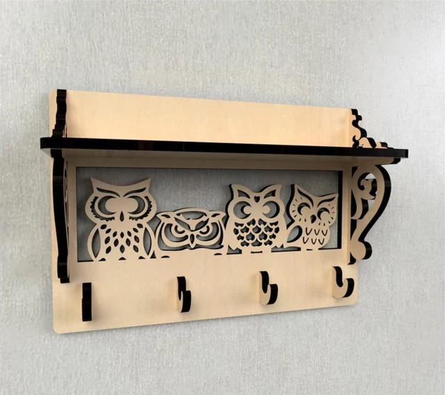 Dekorativni zidni držač za ključeve izrađen je od kvalitetnog materijala i ukrašen prekrasnim laserski rezanim motivom sova.