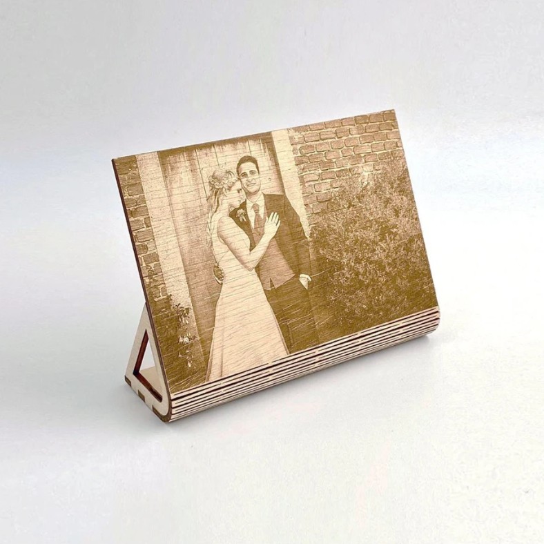 Elegantni drveni prikaz fotografija s modernim zakrivljenim okvirom. Dizajnirano za brzu i jednostavnu montažu